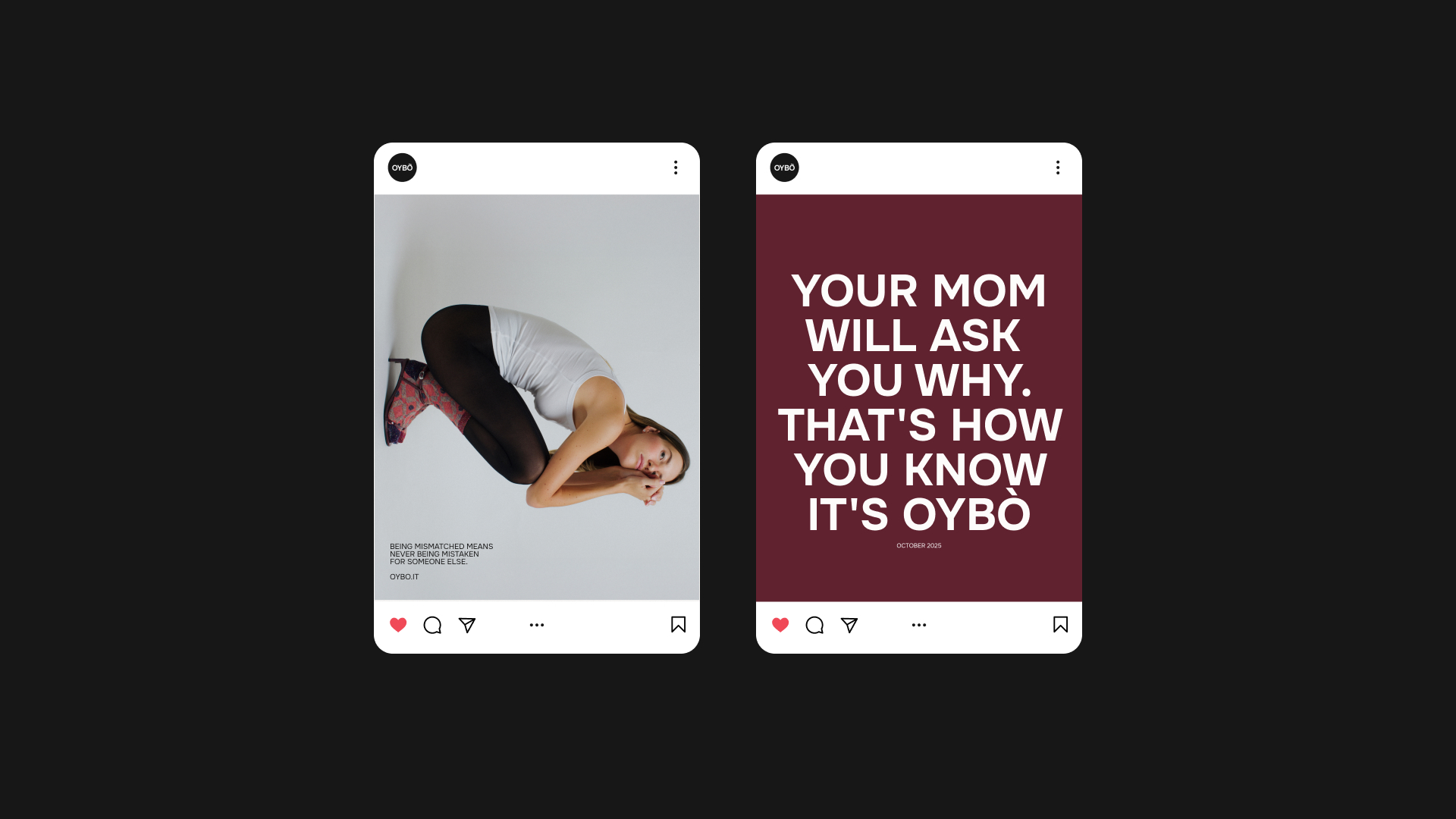 I social media di OYBÒ raccontano la rinnovata personalità del brand, andando al di là della comunicazione del prodotto utilizzando la voce, le esperienze e i volti di persone che incarnano il mismatched.